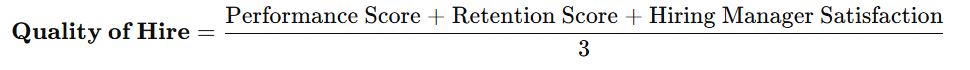 - Quality of hire : Quality of hire measures how successful and valuable a new employee is after being hired. It helps organizations evaluate whether their hiring process is bringing in the right talent, not just filling roles quickly or cheaply.