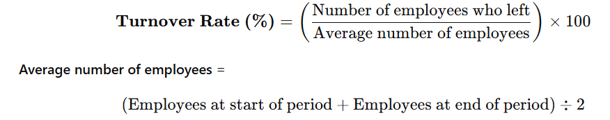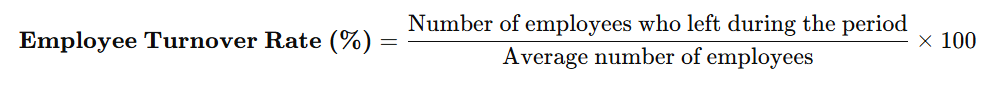 - Employee turnover rate : It is the percentage of employees who leave during a specific time period. This could be due to resignation, retirement, termination or other reasons. It helps employers evaluate stability of the workforce and effectiveness of retention strategies.