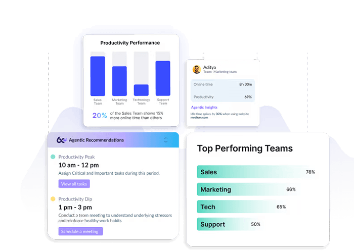 Get Ready to See Your Team’s Potential with AI-Powered Employee Productivity Tools. Boost productivity, optimize resource allocation, and ensure compliance across your organization - all through a single, intelligent employee productivity monitoring software and workforce analytics platform.
