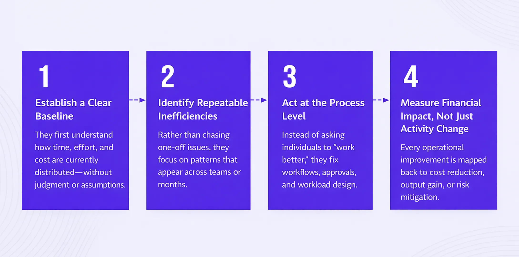 They first understand how time, effort, and cost are currently distributed—without judgment or assumptions.
