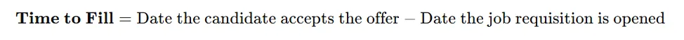 - Time to fill : Time to fill is a hiring metric that shows how long it takes to fill a job role from the moment the job is officially approved/opened until a candidate accepts the offer. A shorter time to fill isn’t always better. Hiring too fast can lead to poor-quality hires, while hiring too slowly can cost the business revenue and team morale.