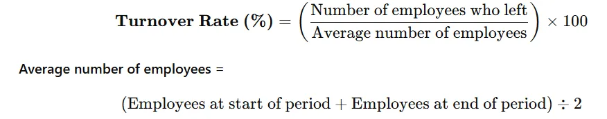 - Employee turnover rate : It is the percentage of employees who leave during a specific time period. This could be due to resignation, retirement, termination or other reasons. It helps employers evaluate stability of the workforce and effectiveness of retention strategies.