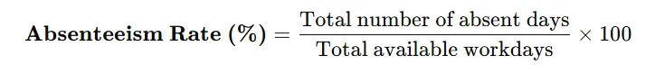- Absenteeism rate : Absenteeism rate measures how often employees are absent from work during a specific period. It helps organizations understand attendance patterns and identify productivity or engagement issues.
