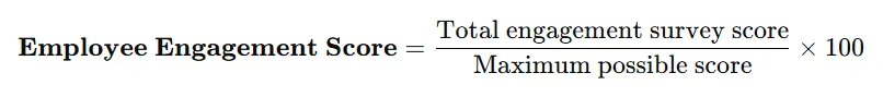 - Employee engagement score : Employee engagement score measures how emotionally committed, motivated, and involved employees are in their work and with the organization. It’s typically calculated using employee survey responses.