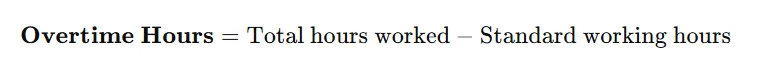 - Overtime hours : Overtime Hours represent the extra hours employees work beyond their regular scheduled working hours (for example, beyond 8 hours per day or 40 hours per week, depending on company policy or labor laws).