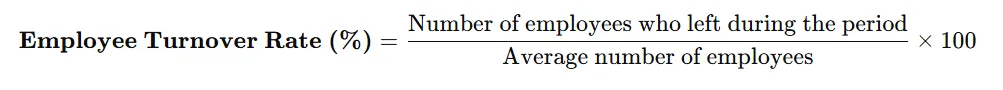 - Employee turnover rate : Employee Turnover Rate measures how many employees leave an organization during a specific time period. It helps HR teams understand retention issues, workforce stability, and overall employee satisfaction.