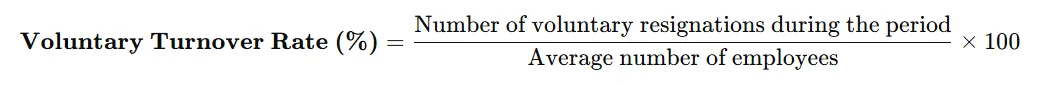 - Voluntary turnover rate : Voluntary Turnover Rate measures the percentage of employees who leave an organization by choice (resignations), excluding layoffs, terminations, or retirements initiated by the employer.