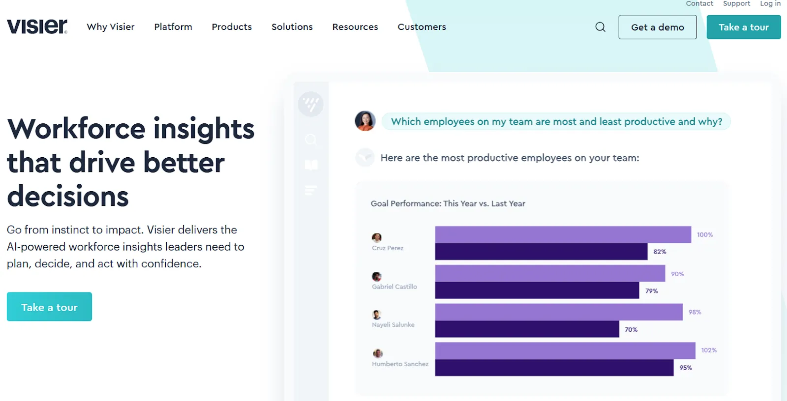 Visier is a people analytics tool designed for mid-to-large enterprises. It improves workforce planning, employee management and business outcomes through workforce analytics. Visier lets HRIS teams deploy and manage people analytics capabilities 6x faster and at a significantly lower cost than its custom-built alternatives.