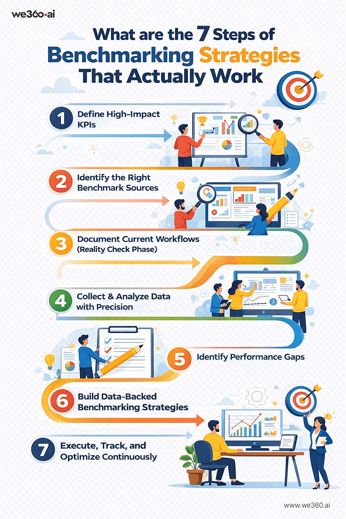These seven steps form benchmarking strategies that actually improve performance, not just report on it.