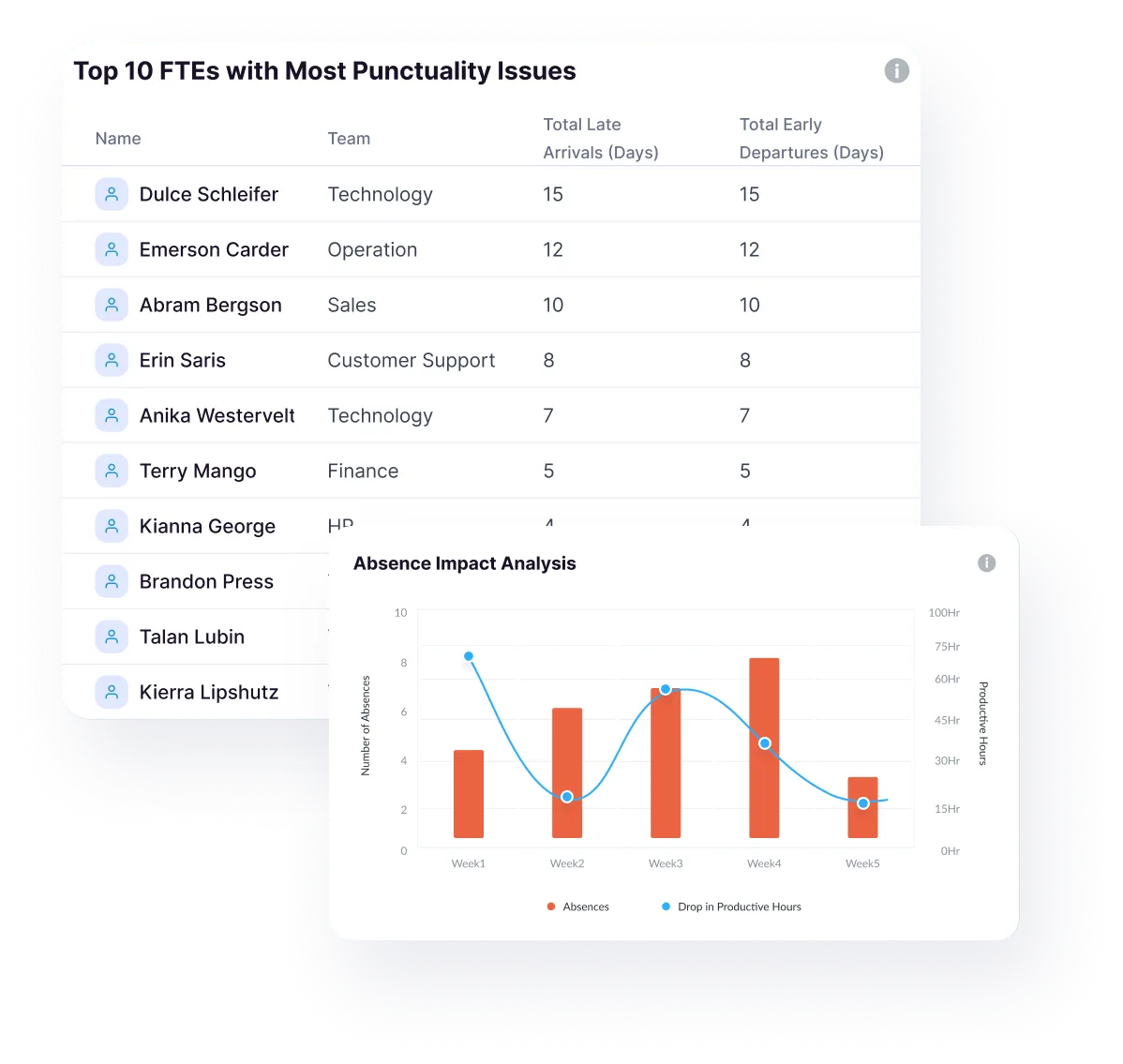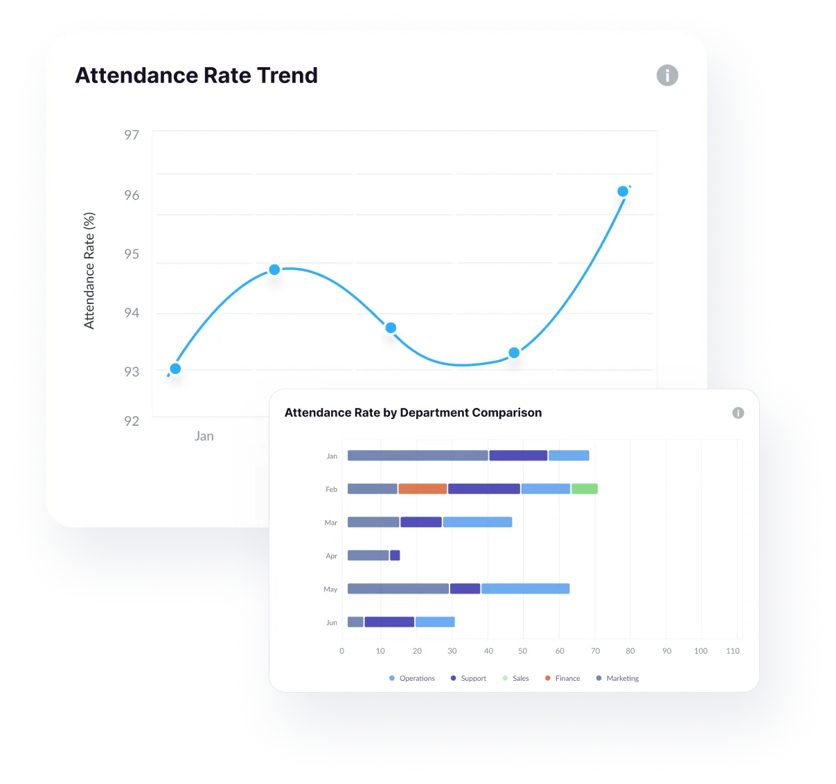 Why assume when you have clear data in your hands? With the crystal-clear view of your organisation’s attendance, including the real-time trends and department-wise comparisons. Instantly spot spikes in absenteeism and track improvements in attendance rates over time. Whether it’s monthly patterns or team-level breakdowns, this feature helps you turn raw numbers into actionable insights. Make smarter staffing, policy, and performance decisions with data that speaks.